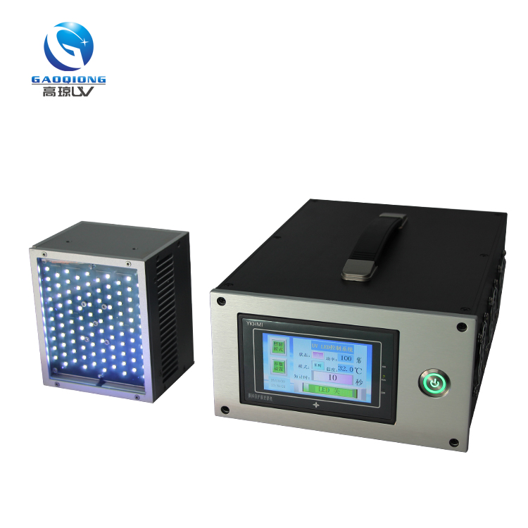 一般工業(yè)用的UV無影膠,又叫UV膠水,這類UV無影膠水的波段較多的采用主波峰為365nm的光引發(fā)劑,波寬基本在250-450NM,這些膠水大都需要比較高的UV光能量,這里指的光能量為UV無影膠吸收的為365NM左右波段的光能量,所以可以采用UVLED點光源、UVled線光源、UVled面光源來進行固化;但是有少部分UV膠水添加的光引發(fā)劑不十分適合用單波段的UVled點光源、UVled線光源或者UVled面光源來固化,因為UV無影膠不容易表干,也就是說固化后膠水表面油油的,或者膠水表面有粘粘的感覺,這種需要借助UV高壓水銀汞燈來固化,UV汞燈含有比較寬的長波和短波,不僅僅在200多nm的短波能很好的反應,而且在360-450NM的波段也能很好的反應,這樣固化出來的膠水表干效果比純粹單一的UVled燈固化出來的效果好很多。