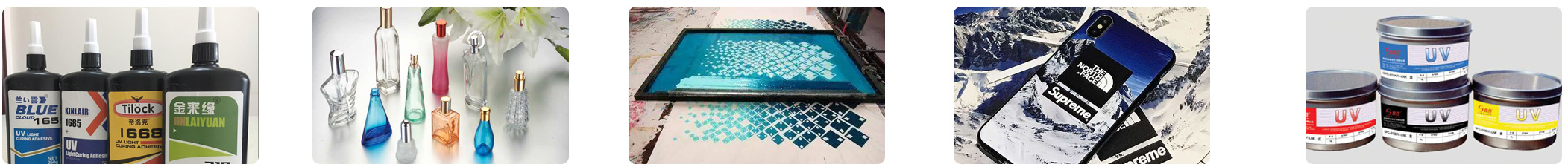 UV膠水或UV油墨固化。如:手機(jī)屏,電子產(chǎn)品粘接等。 |