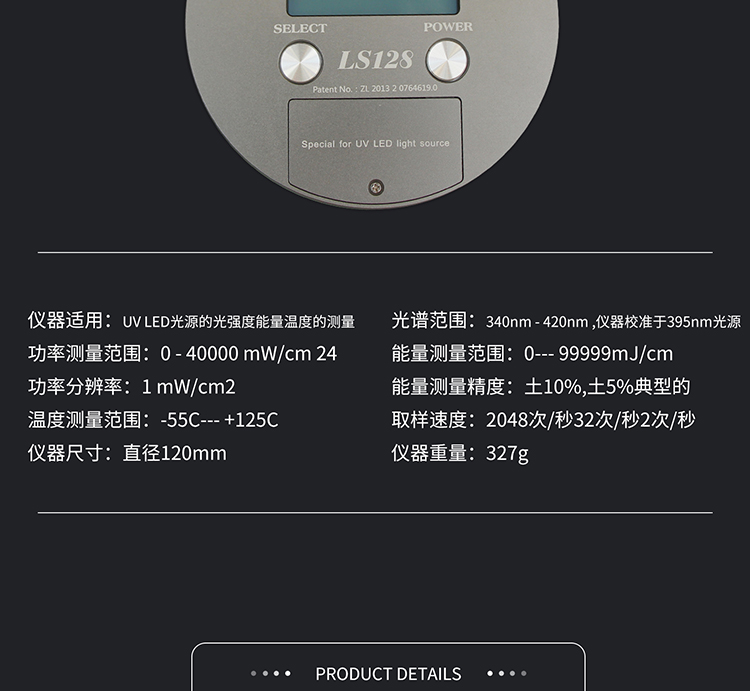 產(chǎn)品規(guī)格:品牌:高瓊光譜范圍:340nm-420nmUV光源:LED外形尺寸:直徑120mm儀器重量:327g