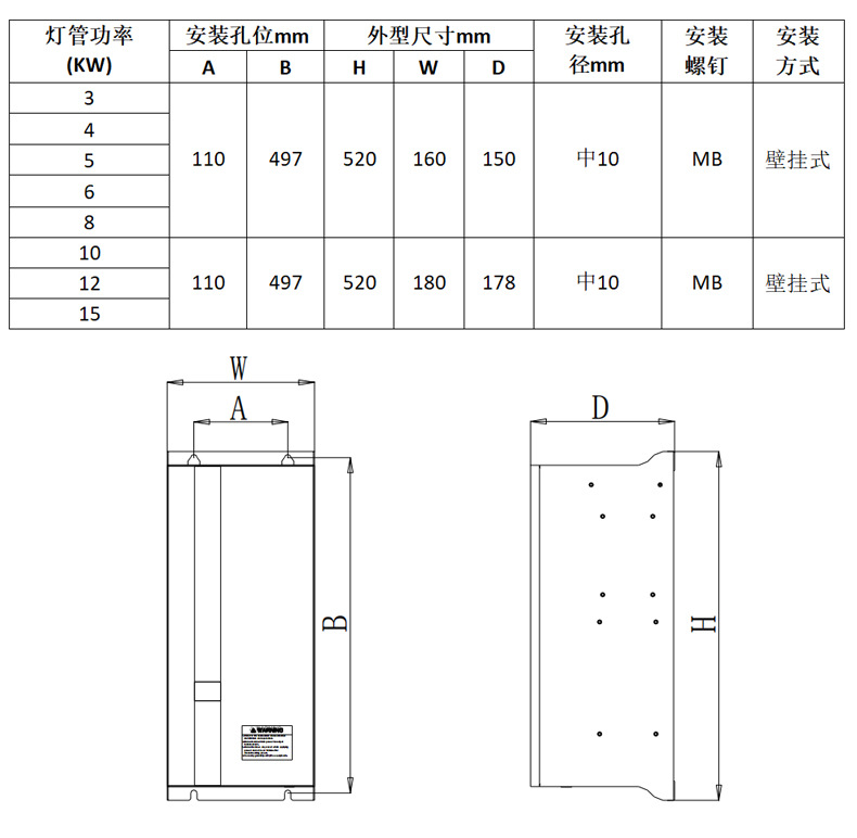 二、無極UV電子電源規(guī)格表